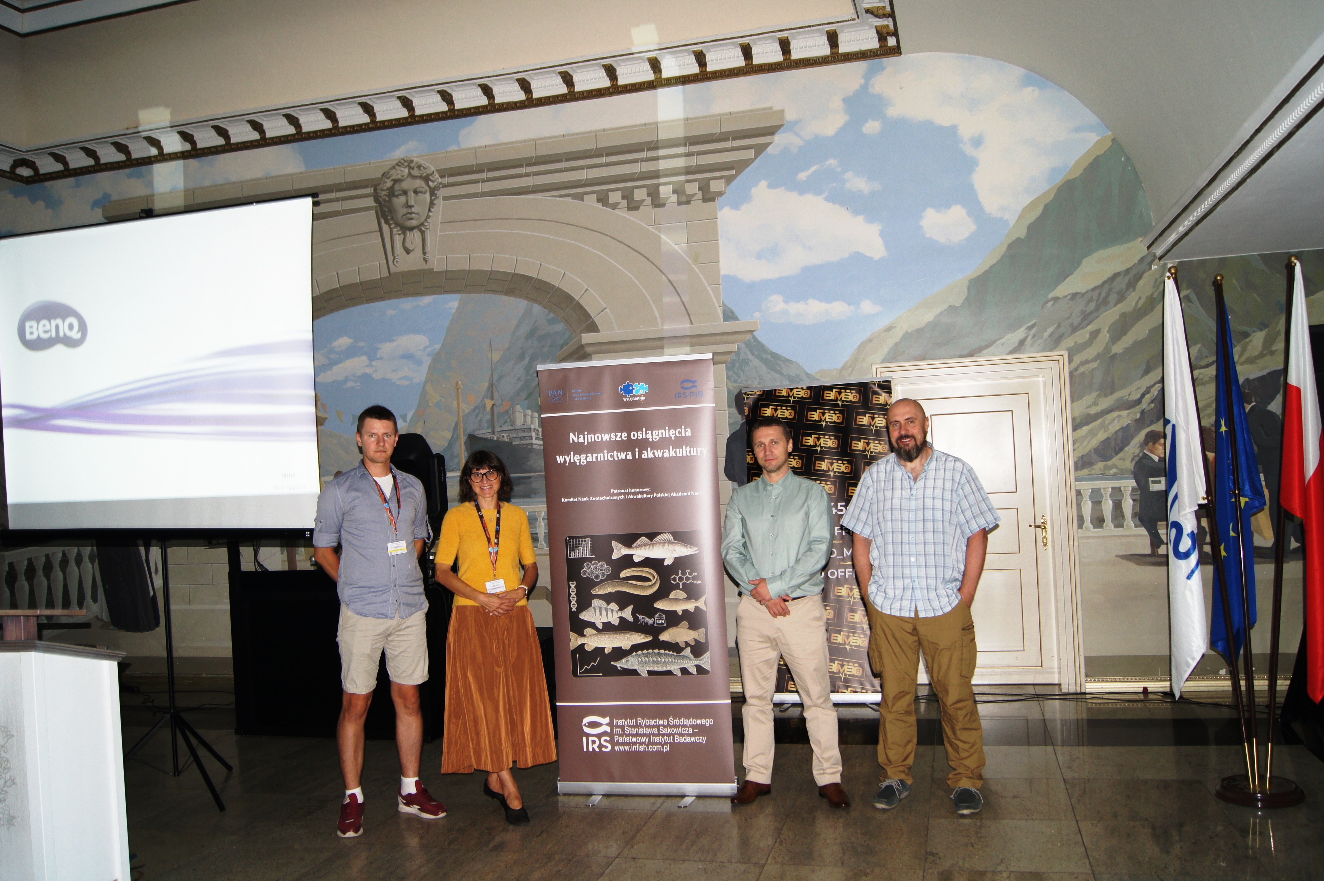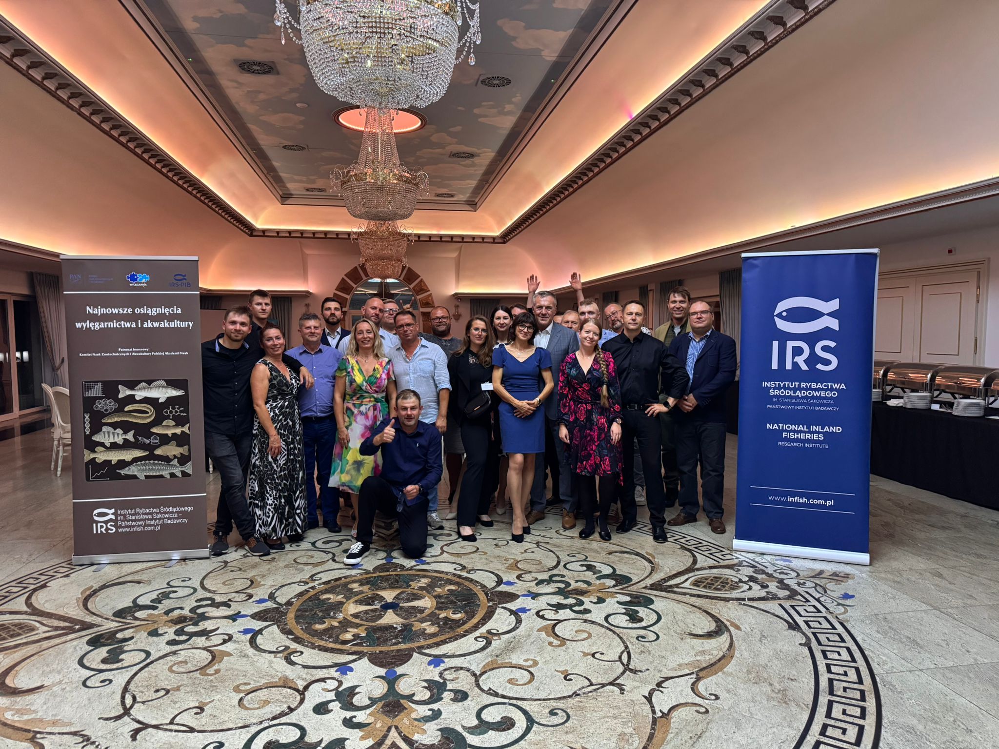 Organizatorem wydarzenia był Zakład Akwakultury Instytutu Rybactwa Śródlądowego im. Stanisława Sakowicza – Państwowy Instytut Badawczy (IRS-PIB) (fot. 2., od lewej strony mgr Michał Cydzik, dr hab. Agata Cejko, dr Maciej Rożyński, mgr Marek Hopko, prof. hab. Zdzisław Zakęś – nieobecny na fotografii). Konferencja zgromadziła 57 uczestników, w tym przedstawicieli instytucji naukowych, praktyków branży rybackiej oraz reprezentantów administracji publicznej odpowiedzialnych za sektor rybactwa (fot. 3 i 4). Patronat honorowy nad wydarzeniem po raz kolejny objął Komitet Nauk Zootechnicznych i Akwakultury Polskiej Akademii Nauk, co dodatkowo podkreśliło jego rangę w krajowym środowisku naukowym. Tegoroczna edycja odbyła się pod hasłem „Najnowsze osiągnięcia wylęgarnictwa i akwakultury”, koncentrując się na innowacyjnych rozwiązaniach biotechnologicznych, które odpowiadają na współczesne wyzwania związane z bezpieczeństwem żywnościowym, kurczeniem się zasobów naturalnych oraz przełowieniem dzikich populacji ryb. Akwakultura, jako jeden z najszybciej rozwijających się sektorów produkcji żywności, wymaga dziś nie tylko intensyfikacji, ale także wdrażania nowych rozwiązań zgodnych z zasadami zrównoważonego rozwoju.